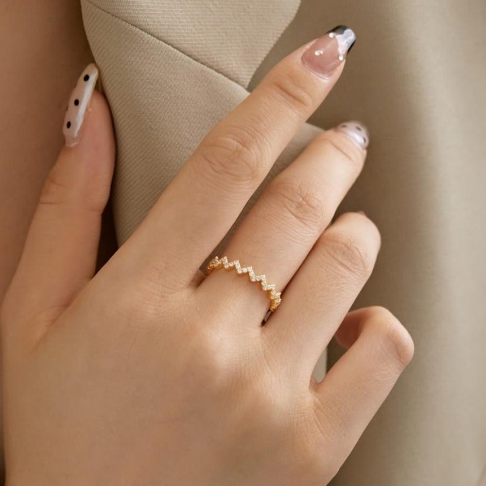 تألقي بإطلالة راقية مع خاتم الفضة المطرز بأحجار الزيركون الصغيرة التي تضفي الكثير من الفخامة.